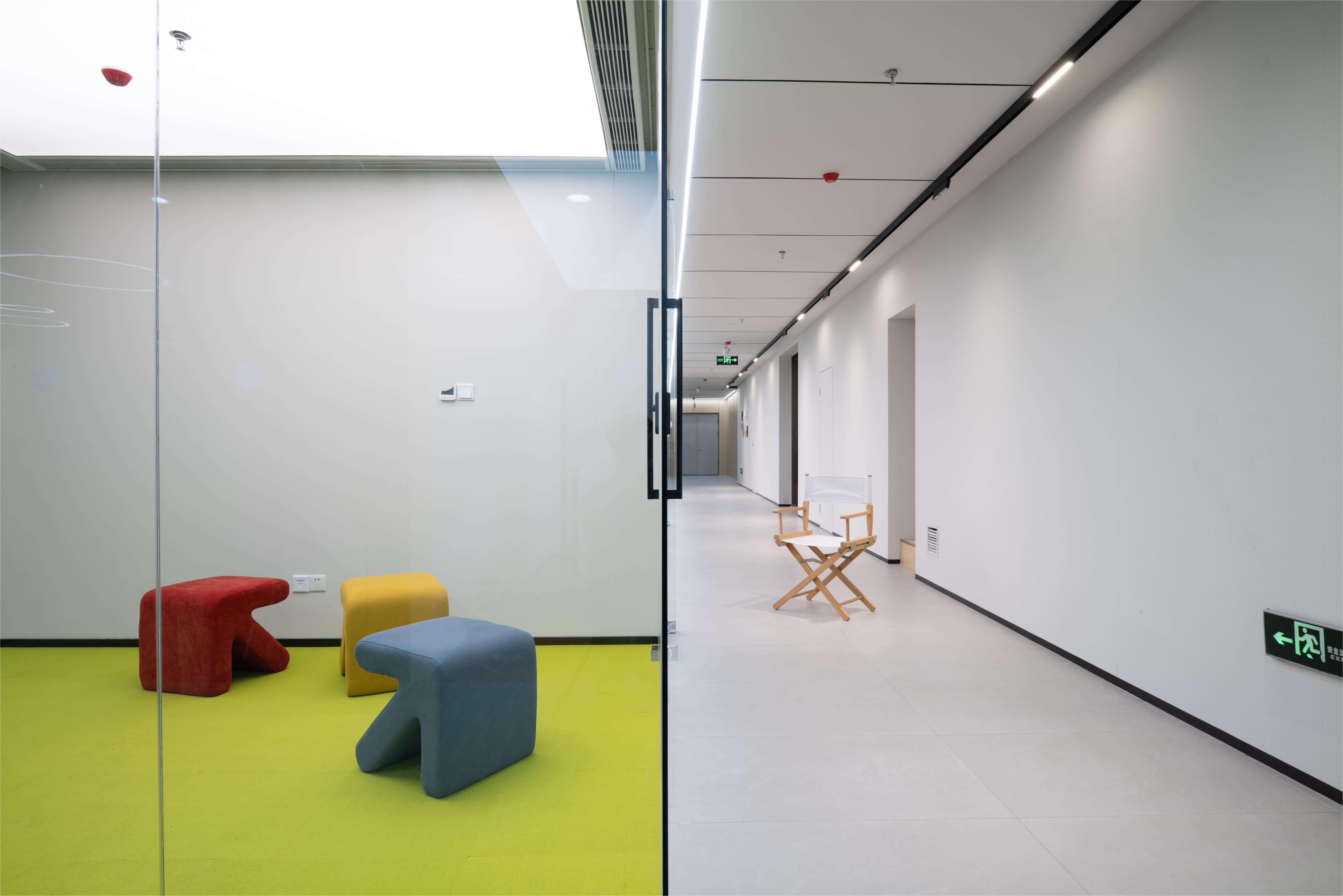 In the design of the whole space, we divided into the whole area in two parts: corridor and open office area.In order to transform the original function of corridor, we keep a large area of white wall, for the future exhibition, gallery. In open office area, we haven’t set up fixed function. In the future it can be switched in different scenarios through the the stage and furniture layout.